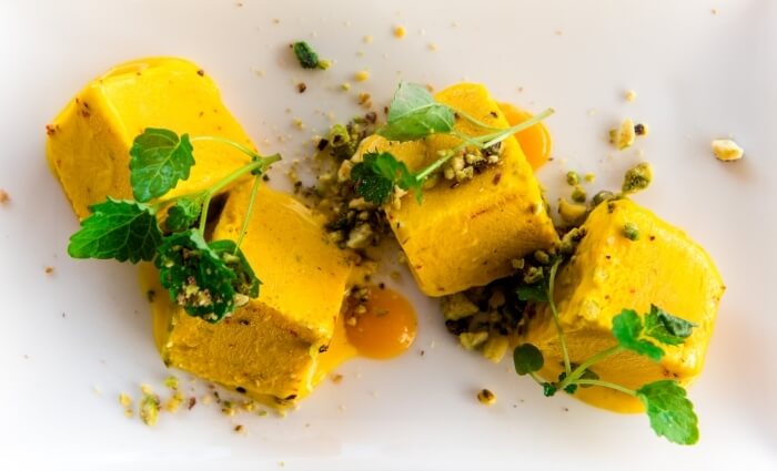Refreshing home made ice cream flavoured with mango and saffron.