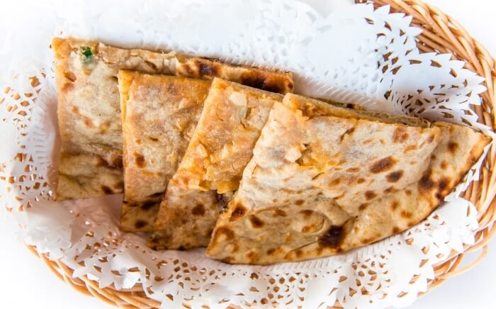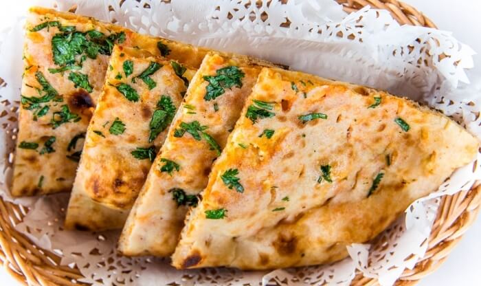 Paratha stuffed with mashed spiced potatoes.