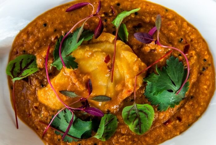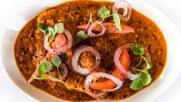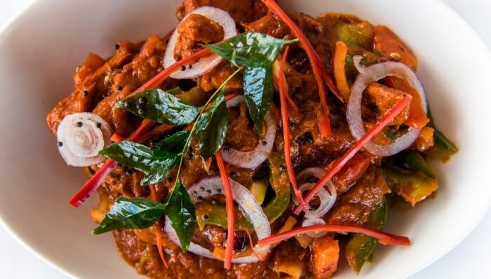 Gluten free. Cooked in a sour sauce with a delicate blend of authentic spices, dried coconut and mustard seeds.