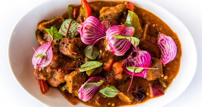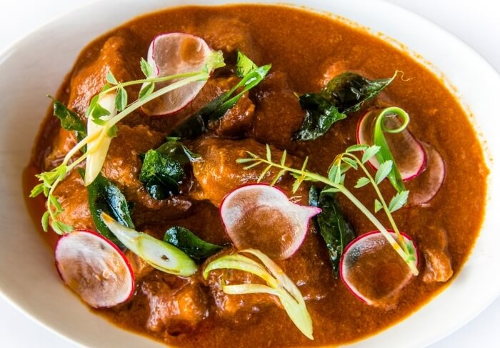 Gluten free. Free range chicken cooked in a sour medium hot sauce with a delicate blend of authentic spices, dried coconut and mustard seeds.