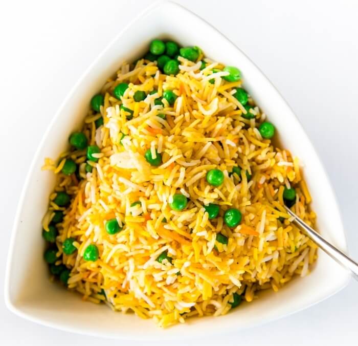 Basmati rice cooked with green peas and spices. Recommended to serve two adults.